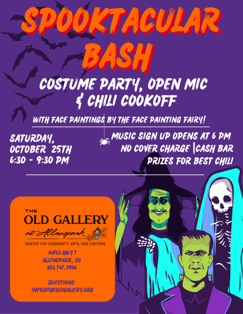 Join us for our Spooktacular Bash. It’s a wickedly good time with something for everyone—whether you’re brewing up a batch of chili for the cookoff, showing off your most spooktacular costume, or stepping up to the mic for some hauntingly good performances. So gather your witches, monsters, and friends, and creep on over to The Old Gallery for a night of fun that’s guaranteed to be a real scream!