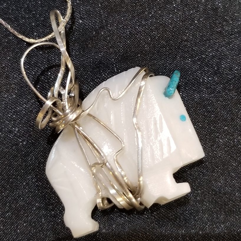 Very concerned about protecting our environment, she uses hand-built, recycled metal in abstract and expressionistic designs. Her designs compliment the stones she personally selects making each truly unique. The colorful, semiprecious stones in her designs, often draw from the vibrant colors of the Caribbean, where she once lived. Recent additions to her collection, Eli is incorporating Native American spirit and power fetishes in many of her designs.