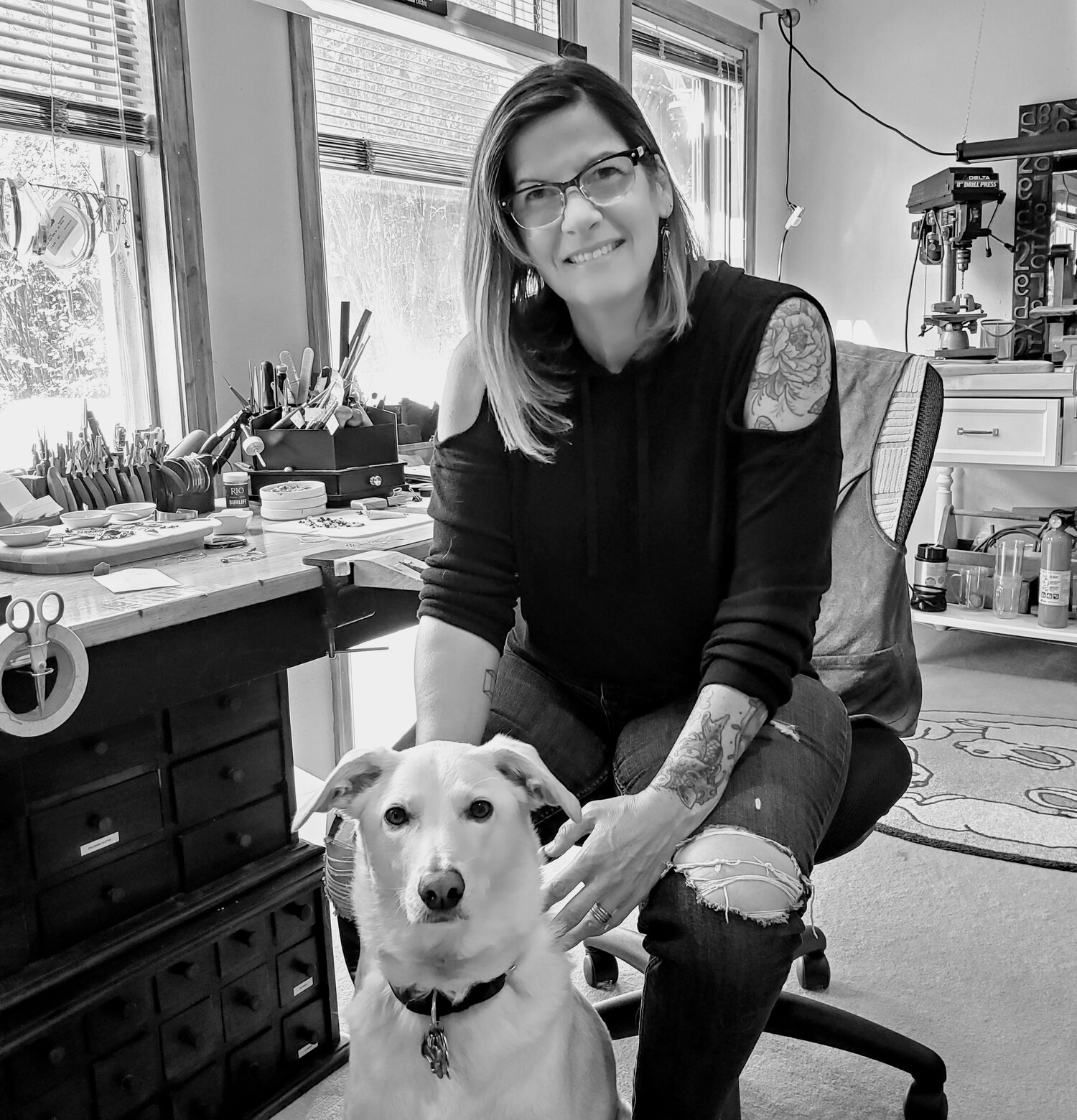 Rachel has a fine arts metalsmithing degree from Moore College of Art and Design in Philadelphia, PA. She has created her own line of jewelry for over 20 years and have been in many hand-crafted shows over the years. She works from her home studio in Longmont, Colorado, with her faithful studio dog Mara by her side. The other half of her business name is from Mara’s cousin Luna in Santa Barbara, CA.