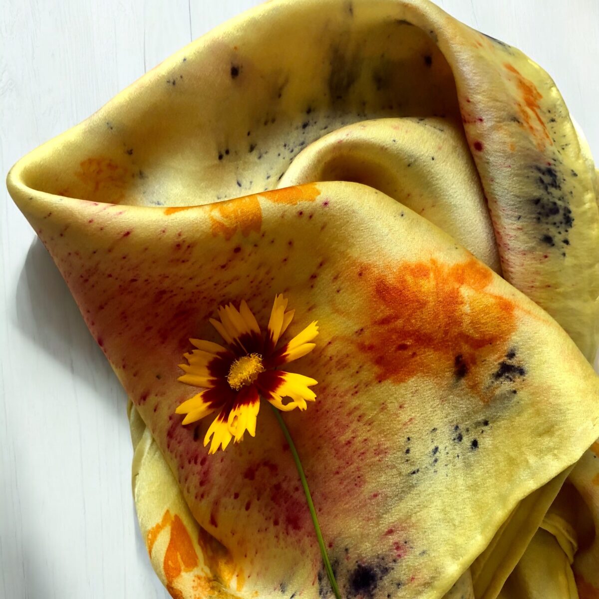 Over the course of 12-years, Mary traveled the county; teaching Felt Making while marketing her exquisite creations. Her remote studio in the Mountains, offers an abundance of materials (example; leaves, foliage and flowers), which she uses to naturally dye and create botanical prints on silk.