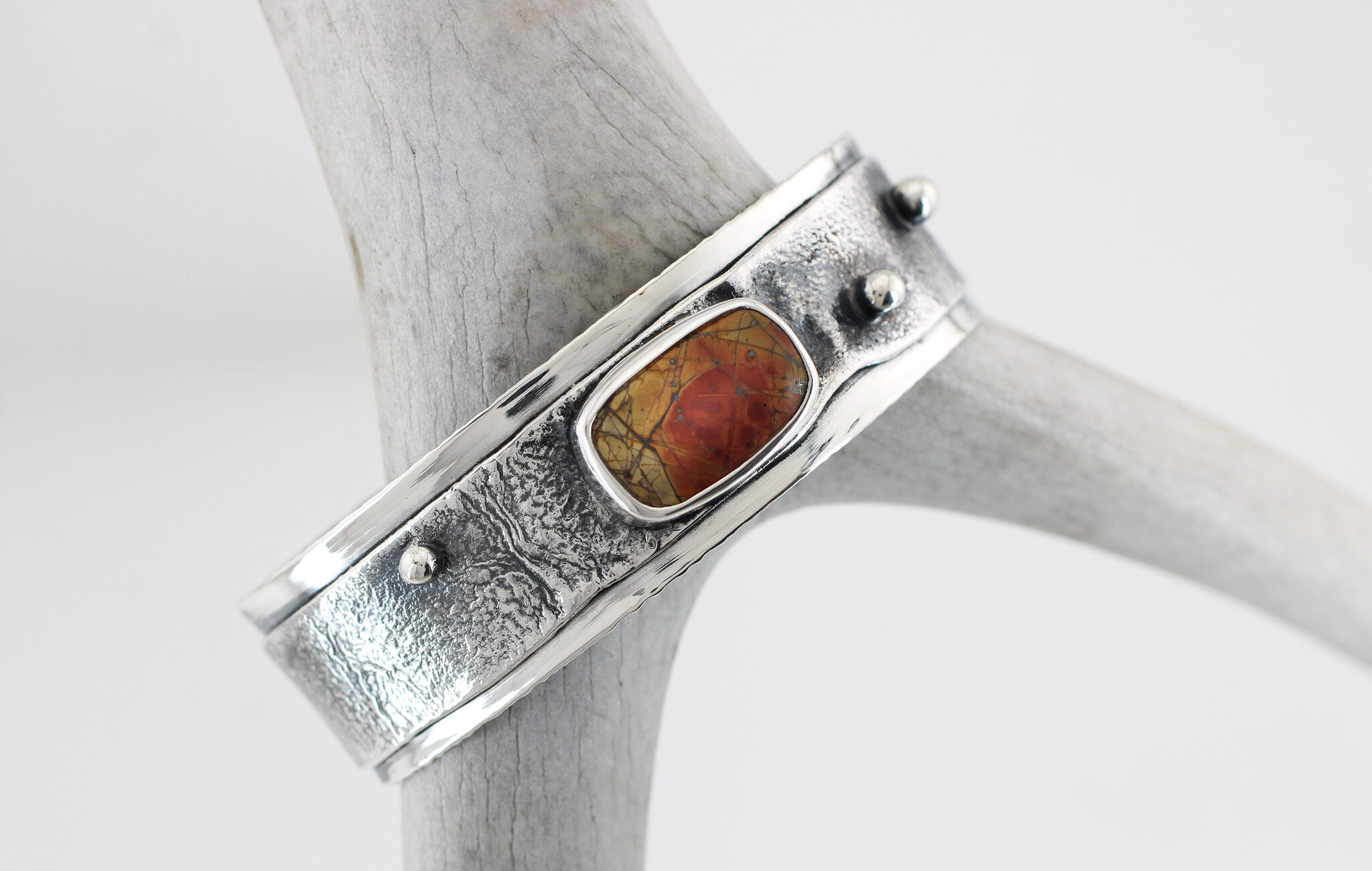 Each piece of jewelry is handcrafted and one-of-a-kind. My art is organic and imperfect, yet perfect to me! Sterling silver, copper, and brass are combined with gemstones to create unique and organic rings, earrings, necklaces, and bracelets.