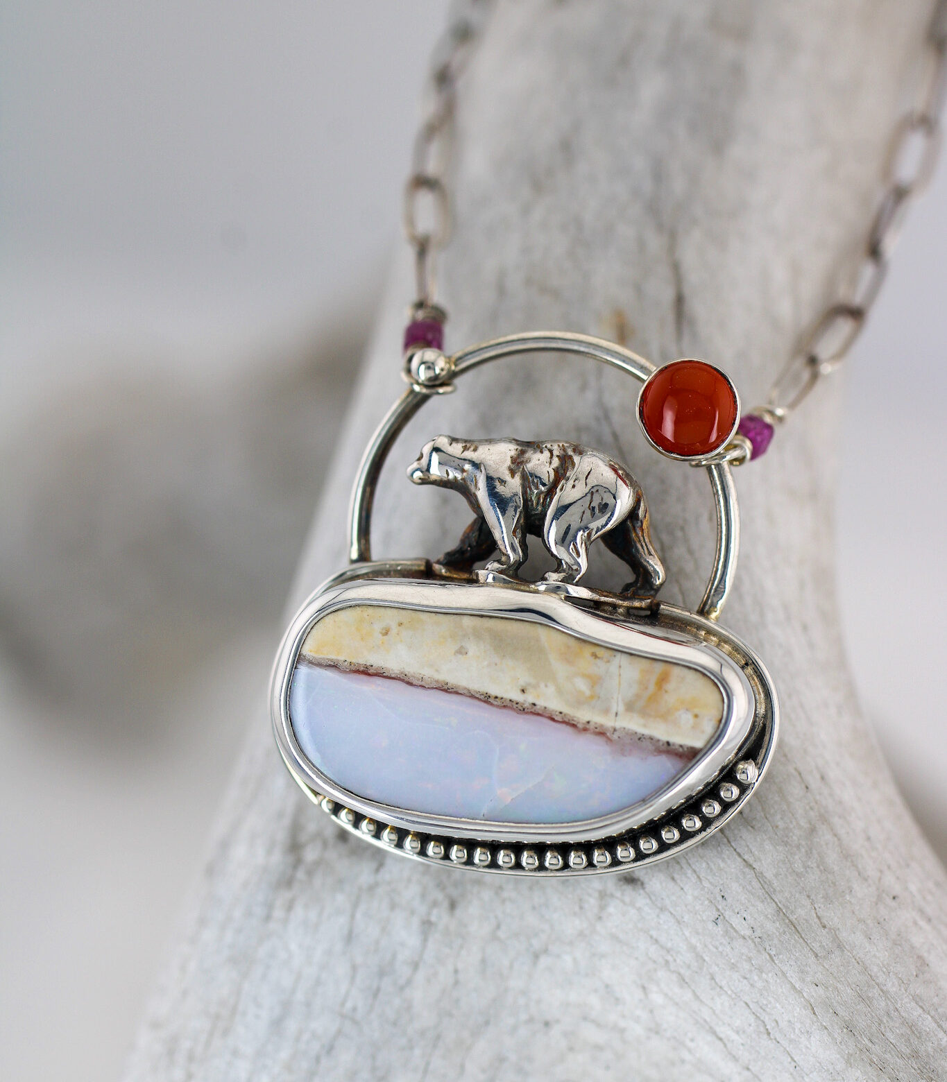 “I believe in letting the metal find its way, the gemstones speak to me, and pull inspiration from nature often. All my pieces are hand-crafted and one-of-a-kind. I want people to have an organic personal attraction to the pieces…something that speaks to you. Being “imperfectly perfect” is all part of the process.”