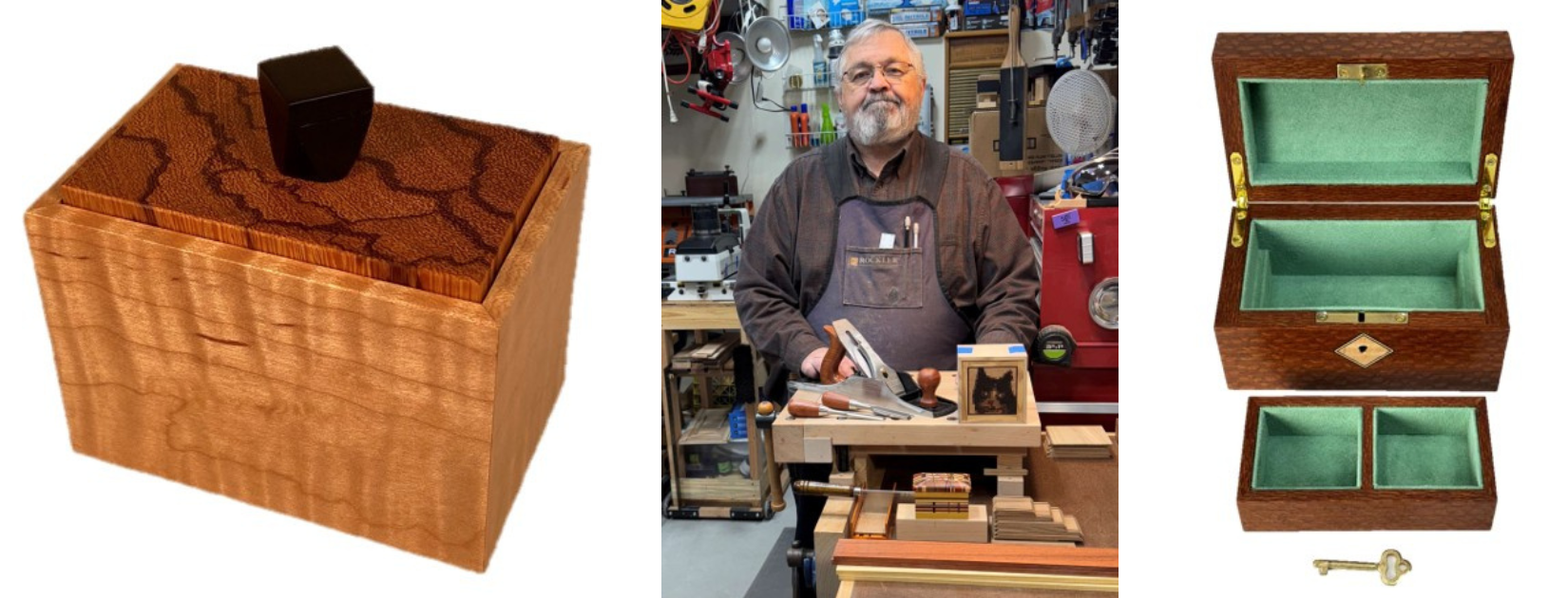 David Stemler is a self-taught artisan who specializes in crafting exquisite small wooden boxes. Inspired in the 70s by a transformative lecture on the soul of wood by James Krenov in Denver, David honed his skills under the guidance of renowned box makers Andrew Crawford and Doug Stowe.