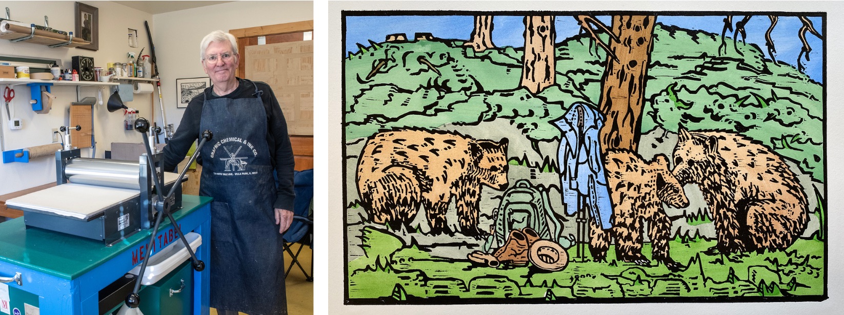 For 35 years Steve was curator of prints and drawings at the Spencer Museum of Art at the University of Kansas, where he specialized in the graphic art of sixteenth-century Northern Europe. He purchased a small etching press shortly after he retired, fulfilling a longtime dream. Steve and his wife Diane bought their year-round home in Estes Park in 2016.