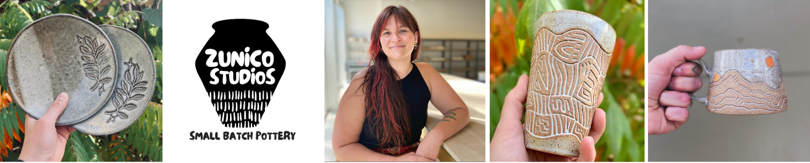 Julia Zúñiga is a ceramic artist and educator whose work explores themes of ritual, heritage, and connection. Drawing on the bold patterns from Colombian and Ukrainian pottery and textiles, their pieces celebrate both cultural history and personal expression. She creates with the belief that ceramics can be both everyday objects and vessels of meaning—linking people to tradition, community, and the earth itself.